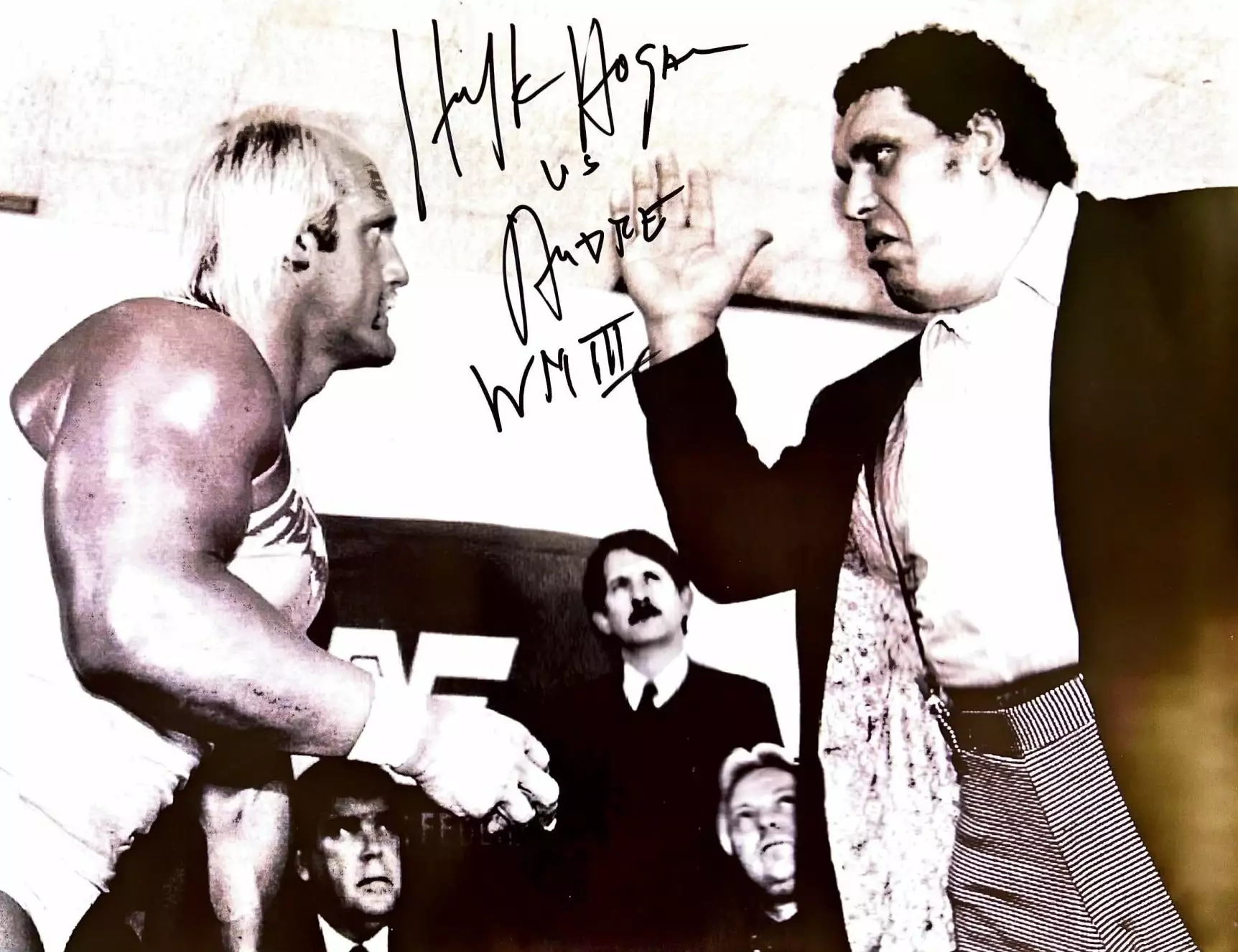 Hogan’s Beach Shop Hulk Hogan & Andre Black & White Autographed 18×24
